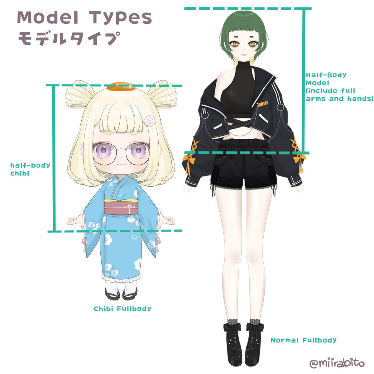 ∘ All half-body commissions include arms and hands rigging.